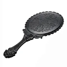 Oval Hand Held Makeup Mirror Black Ladies Floral Vintage Mirror Beauty Dresser